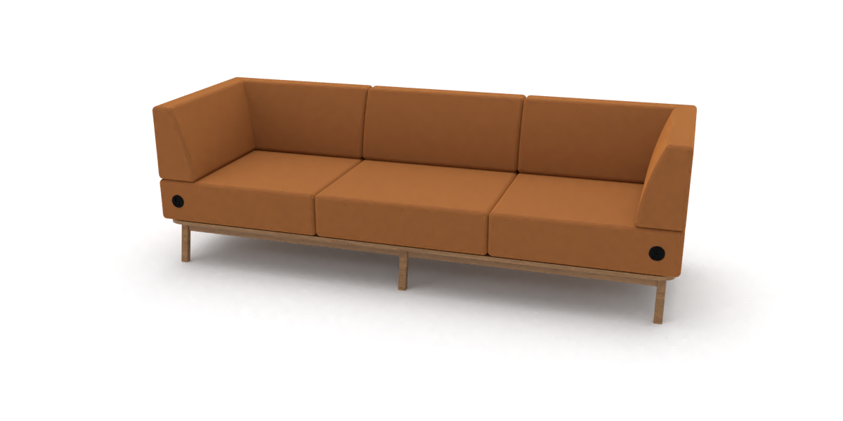 Sofá Tres Puestos Base de Madera con Brazos Plank